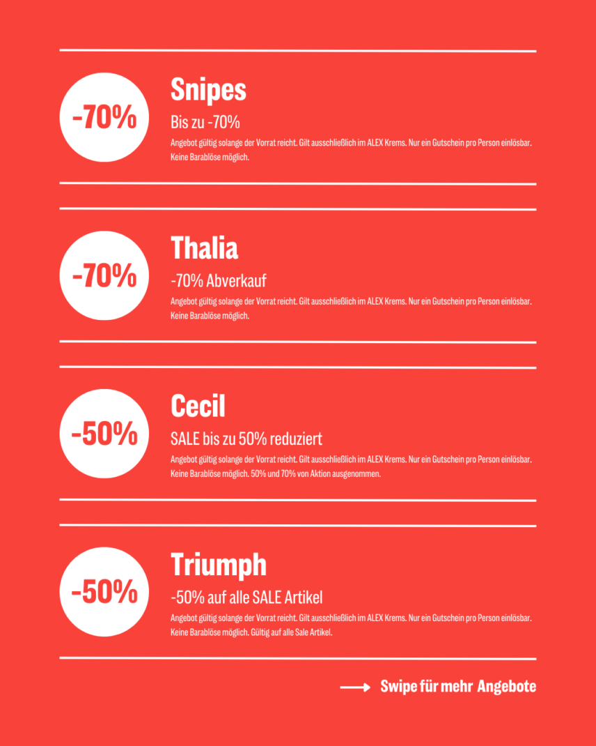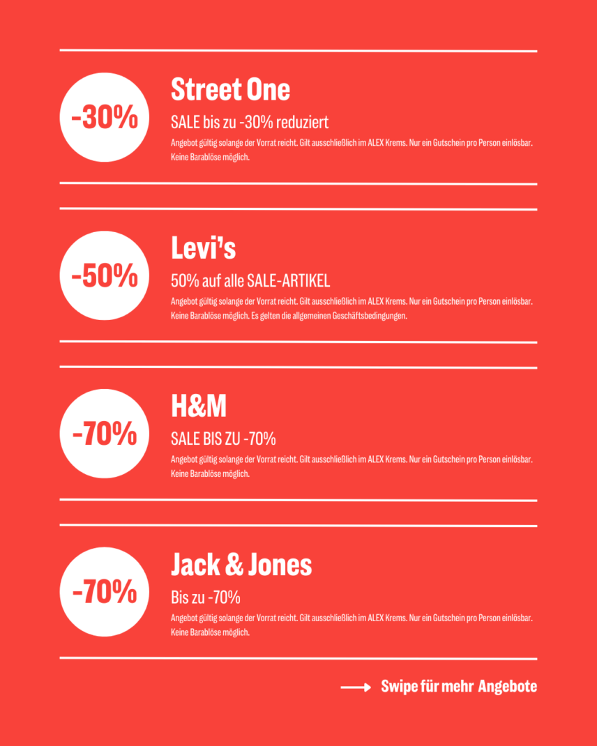 Entdecke jetzt TOP-ANGEBOTE in unseren Shops im ALEX!