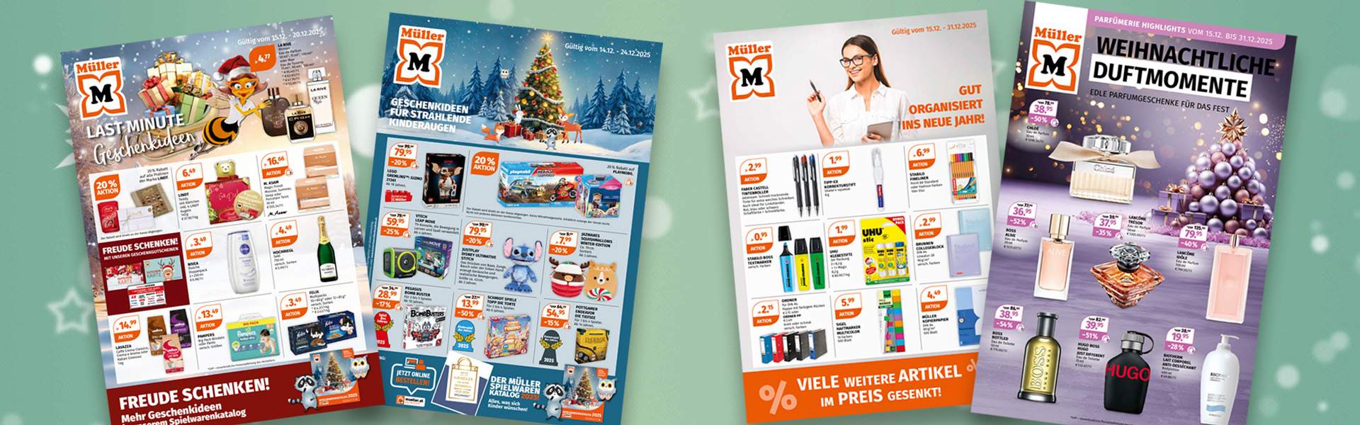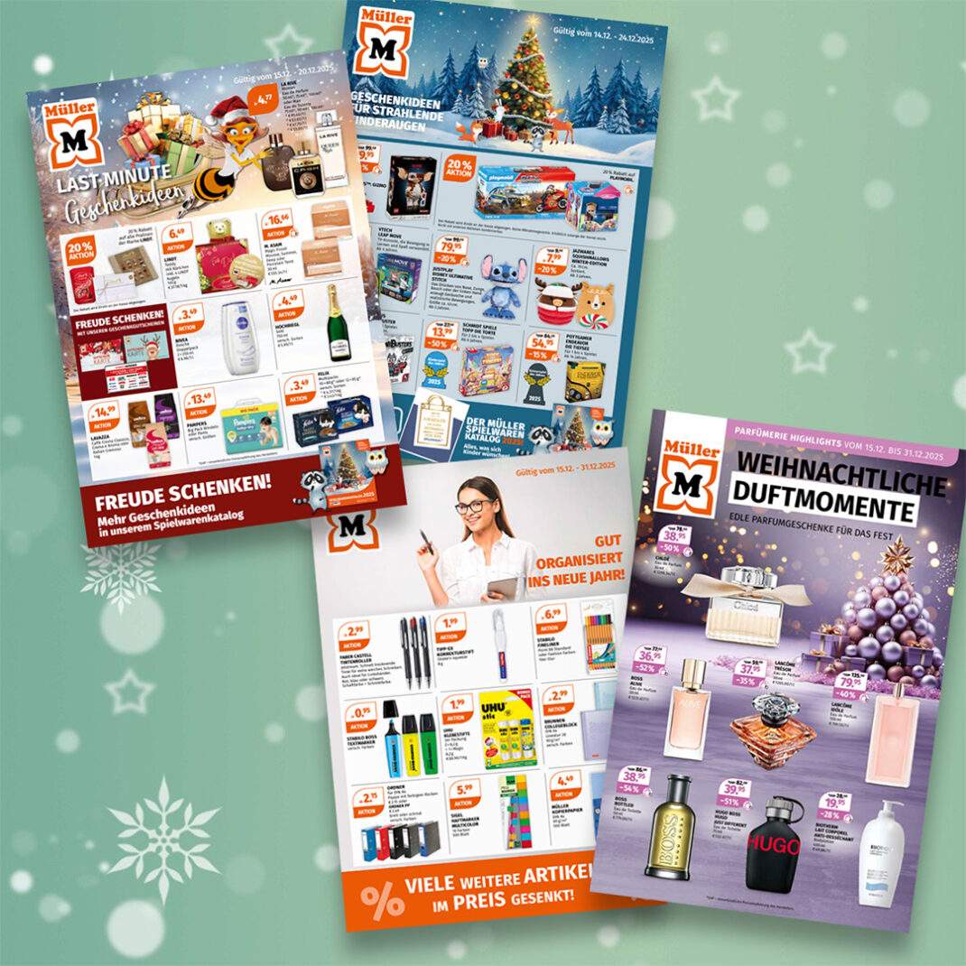 (Laufzeit Drogerieprospekt: 15.-20.12.2025, Laufzeit Spielwarenprospekt: 14.-24.12.2025, Laufzeit Parfümerie-Highlights: 15.-31.12.2025, Laufzeit Schreibwarenprospekt: 15.12.-31.12.2025; solange der Vorrat reicht.)