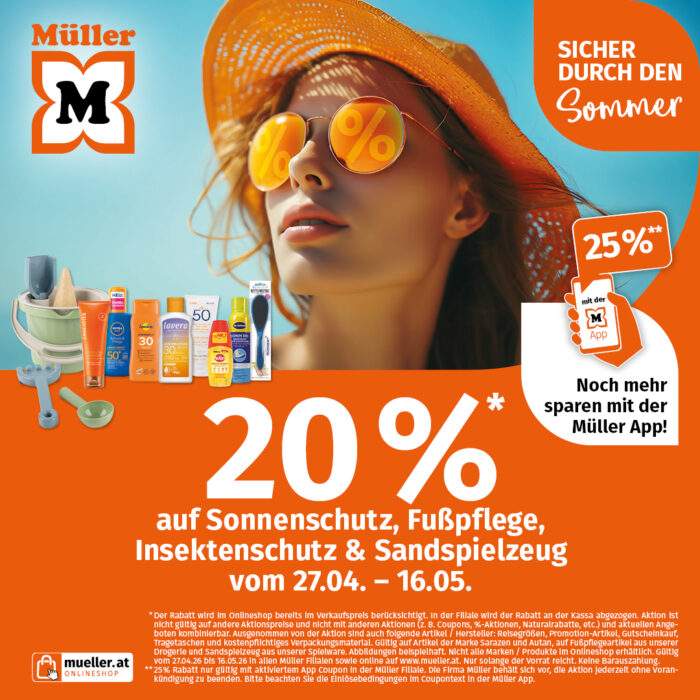 Sommer Sonne Aktion bei Müller Sicher durch den Sommer mit der Sommer Sonne Aktion von Müller Spare jetzt 20%* auf…